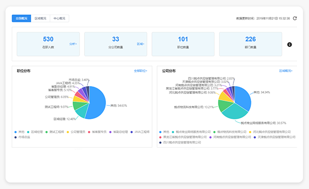 通过人力资源在线管理、行政流程在线审批、业务在线评估、培训等内部数据,可以客观完整的为企业管理画像,为企业员工产能等关键指标进行评估。从而为企业管理者的日常管理提供科学依据。